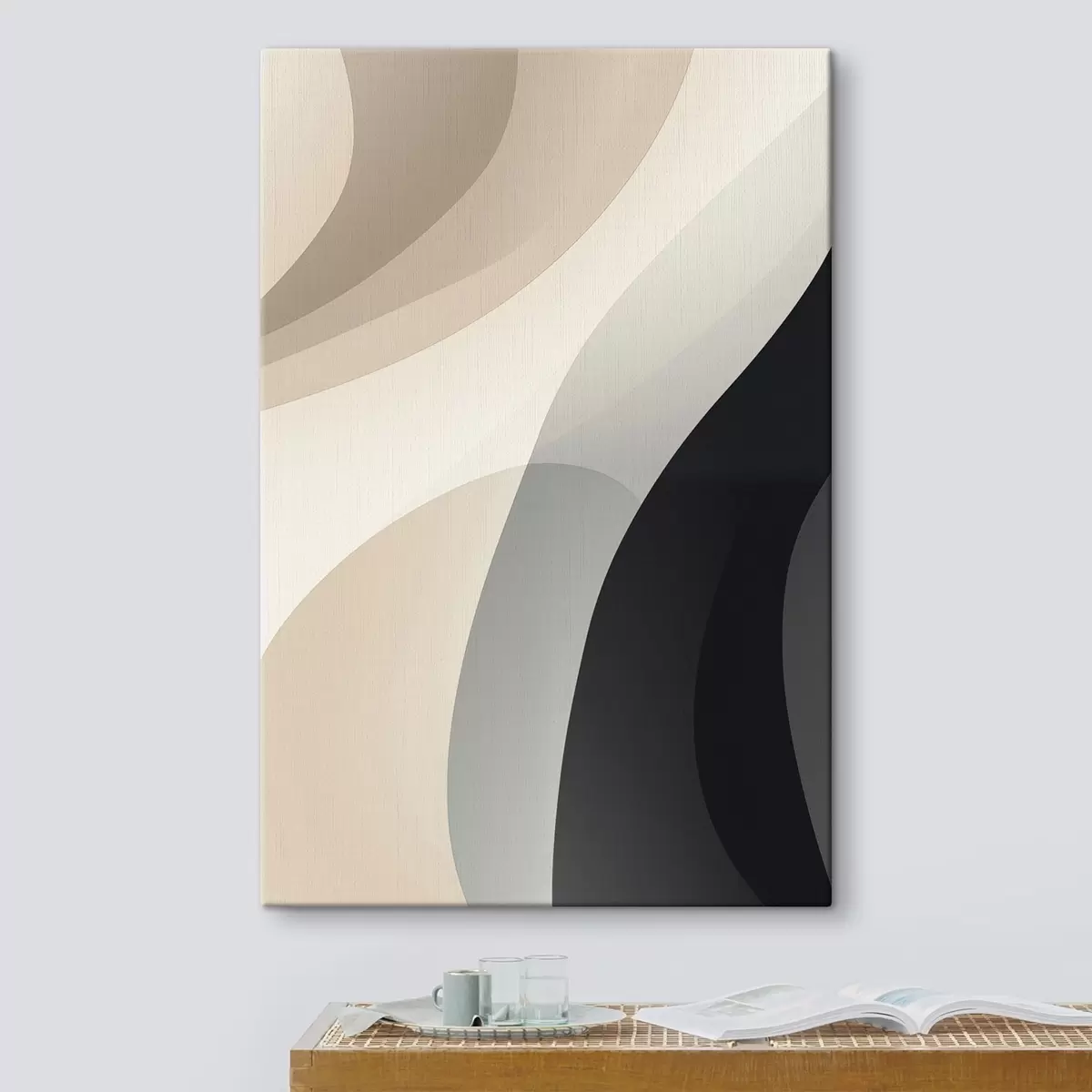 Gemälde Organische Wellenformen in warmem Beige und Anthrazit Art. s46494