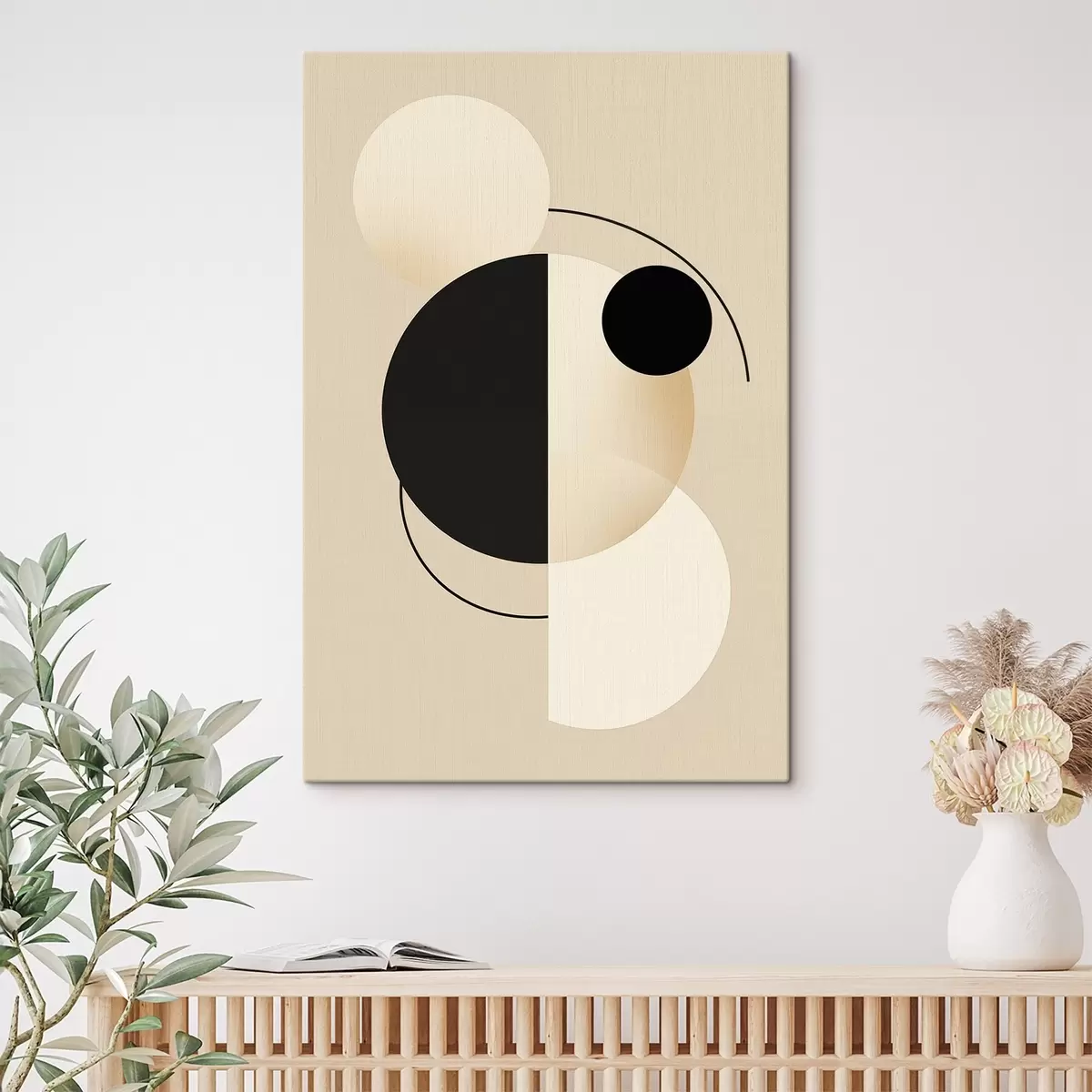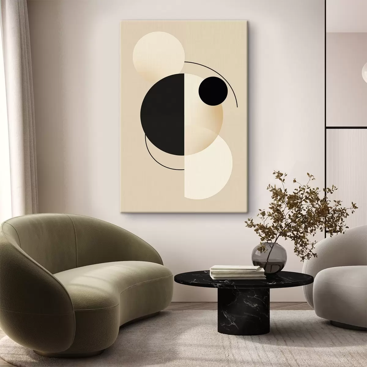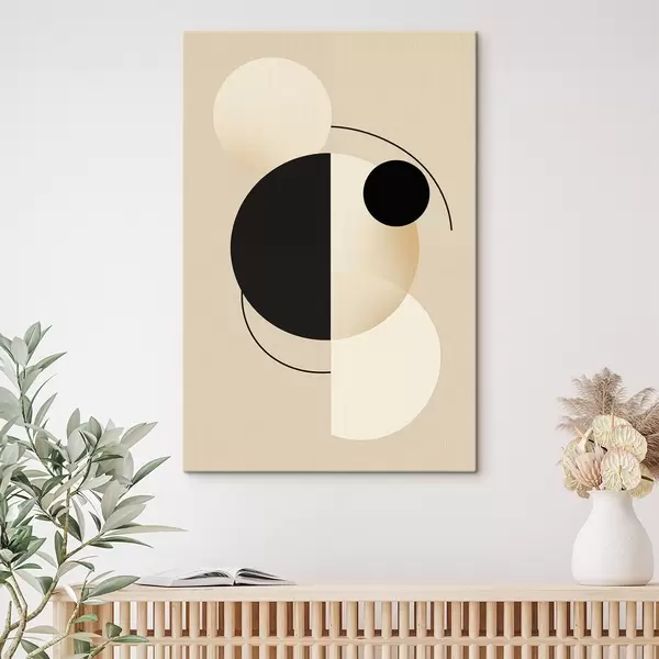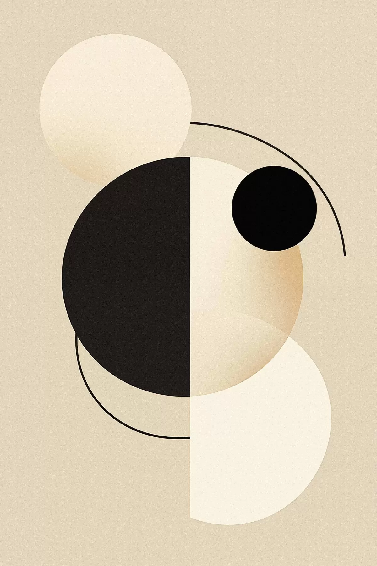 Gemälde Grafische Kreise und Bögen in sanftem Beige und Schwarz Art. s46497