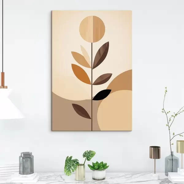 Gemälde Stilisierte Blume mit geometrischen Blättern in warmen Farbtönen Art. s46500