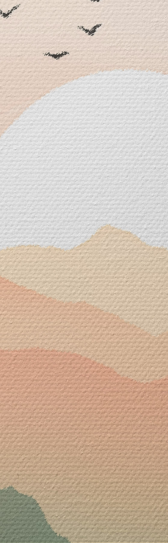Fototapete Pastellfarbener Sonnenuntergang über einem ruhigen See mit fernen Hügeln und Vögeln s46508