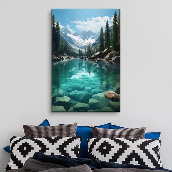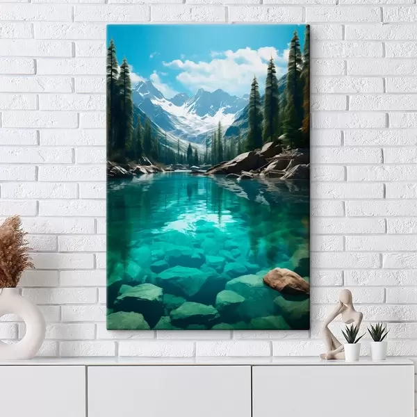 Gemälde Klarer Gebirgsfluss mit felsigem Bett und schneebedeckten Gipfeln Art. s46514