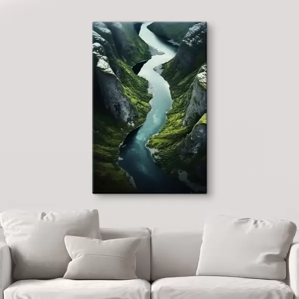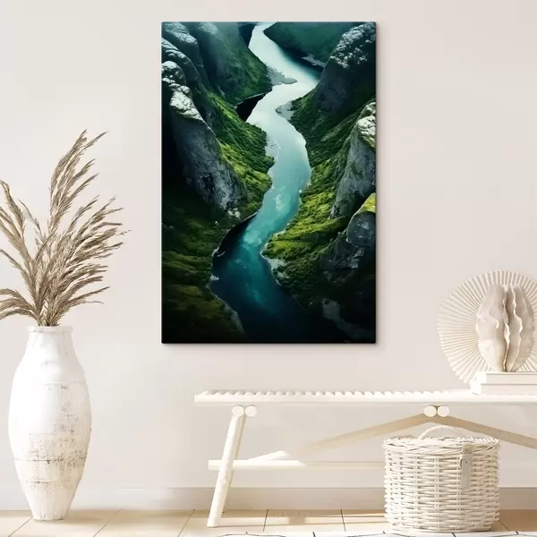 Gemälde Fluss, der sich zwischen Klippen schlängelt, Luftaufnahme Art. s46521