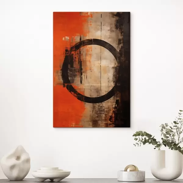 Gemälde Abstraktes Bild mit großem schwarzen Kreis und warmen Texturen Art. s46528