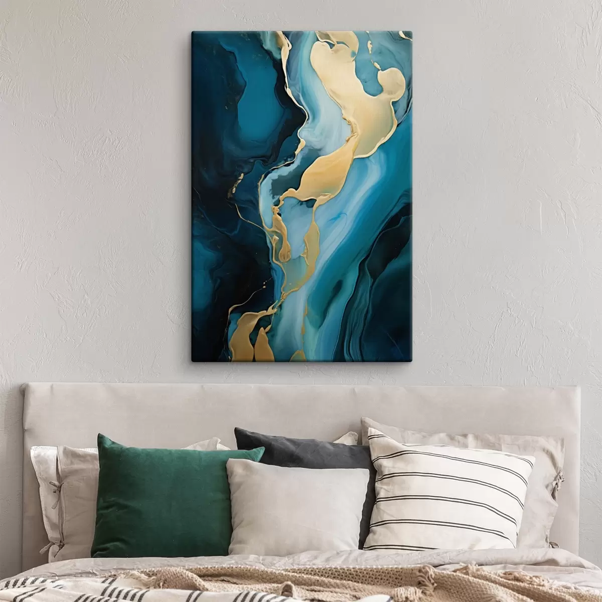 Fototapete Tealblaues Abstraktes mit einem ockerfarbenen Strom s46530