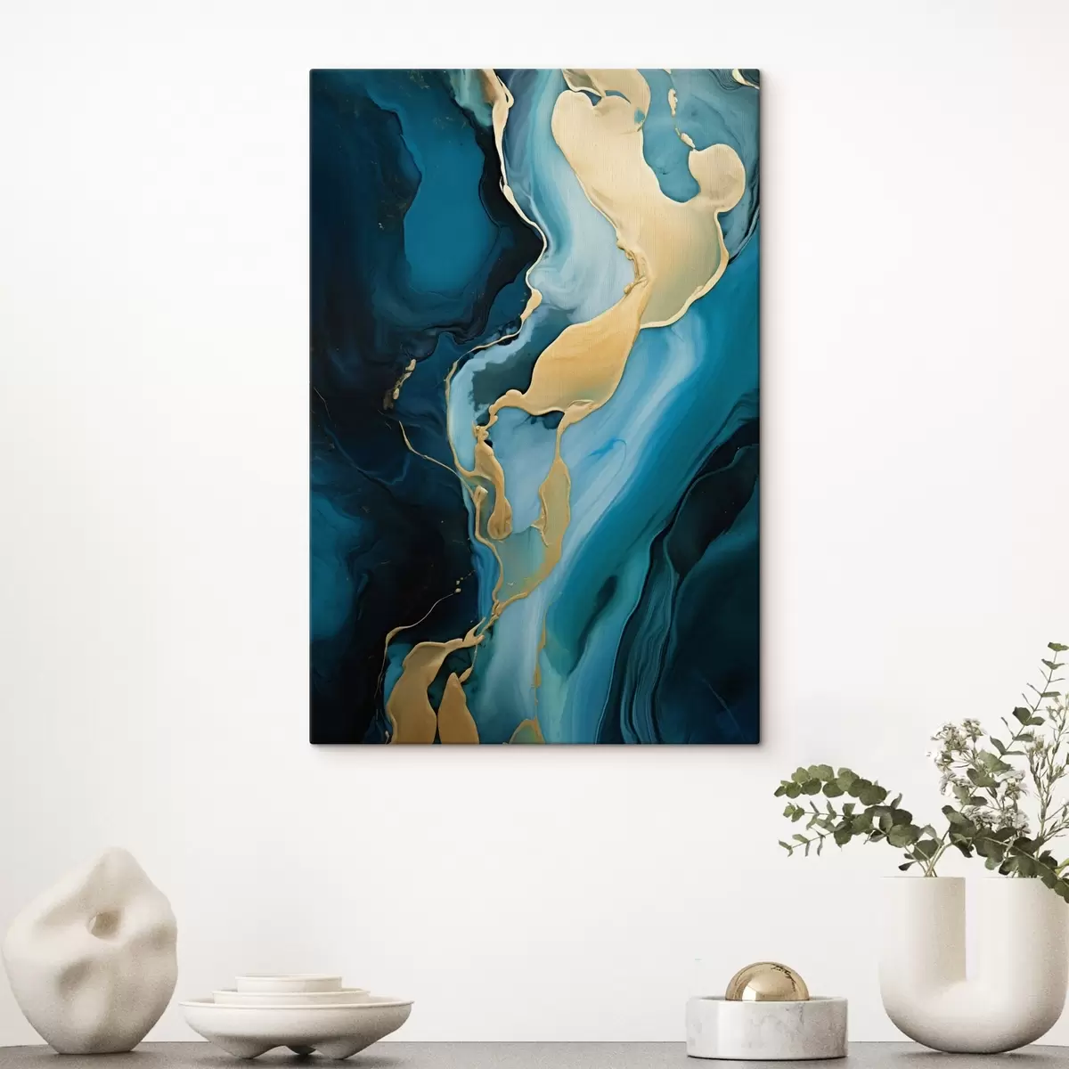 Gemälde Tealblaues Abstraktes mit einem ockerfarbenen Strom Art. s46530