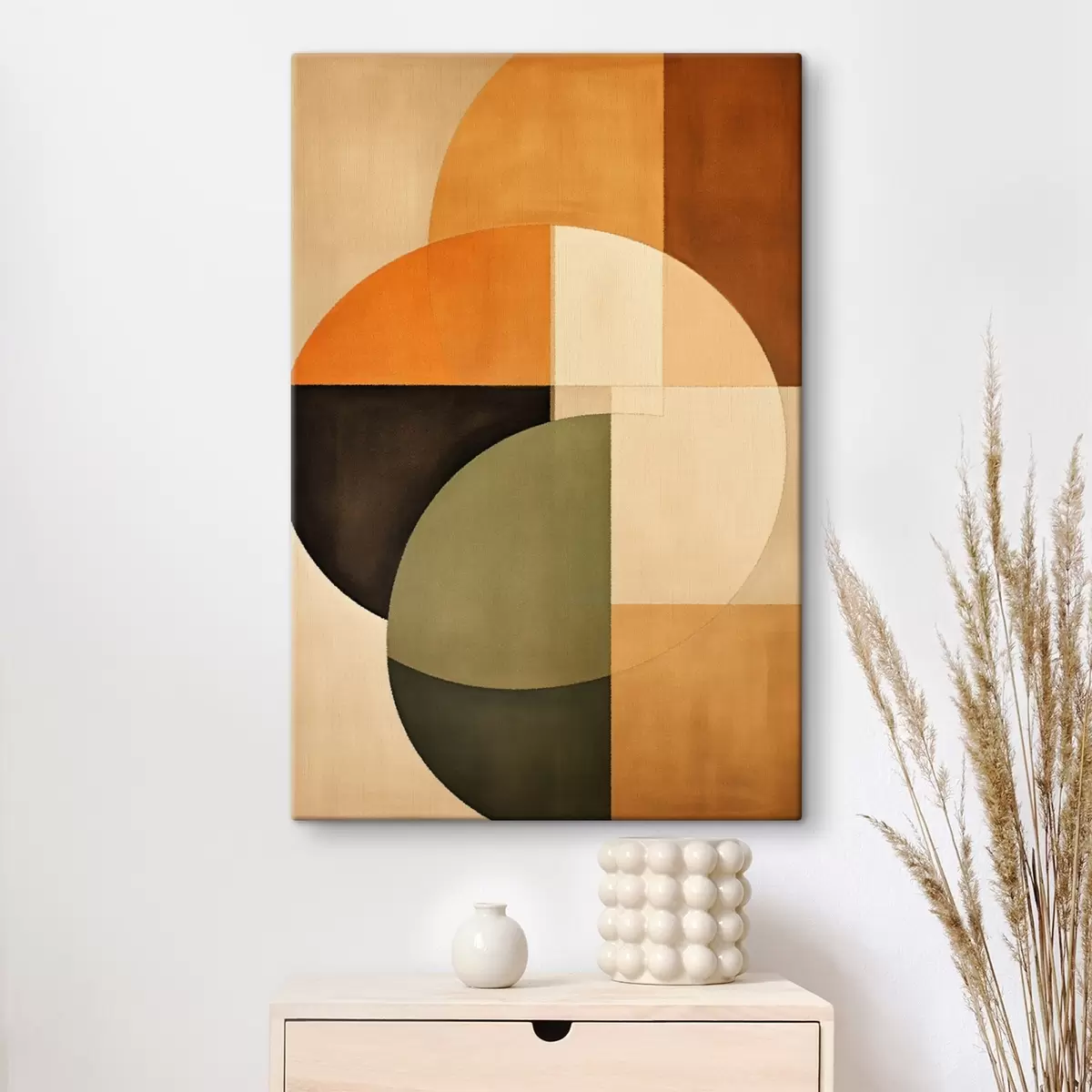 Gemälde Sich überschneidende Kreise in einer sand-olivfarbenen Palette Art. s46537