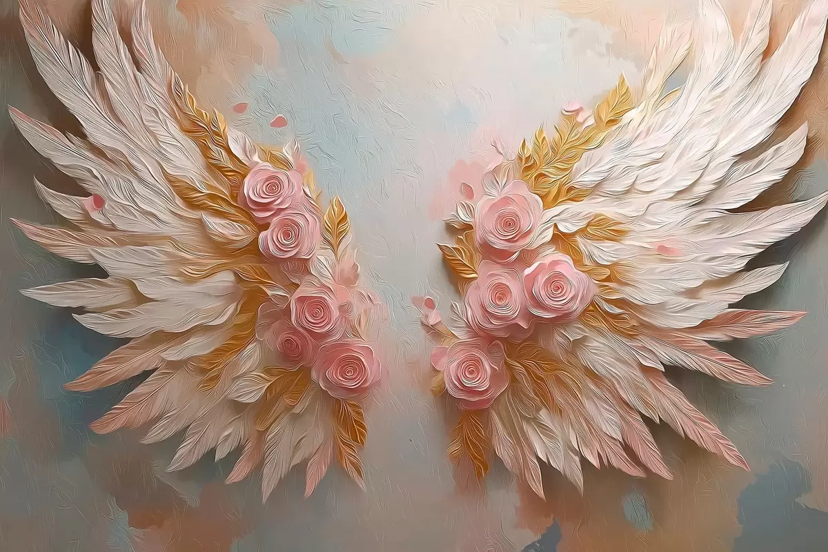 Fototapete Flügel in den Farben Gelb und Rosa s46551