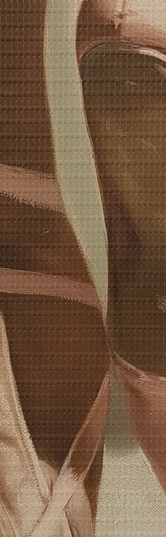 Um die Leinwand auf Keilrahmen zu spannen, ohne das Bild zu beschädigen, verwenden wir ein gespiegeltes Bild.