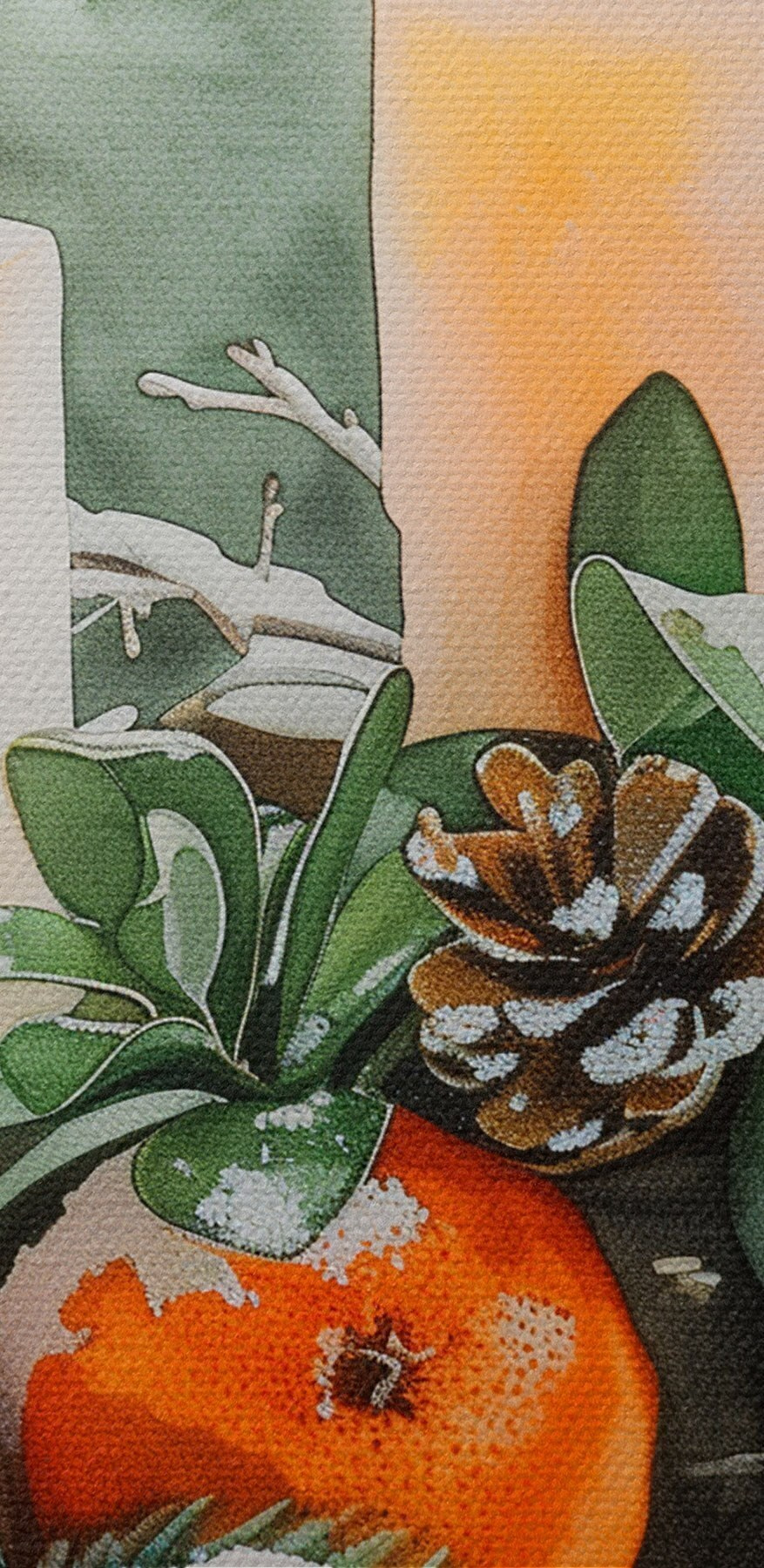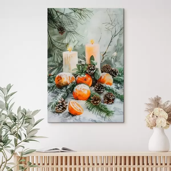 Gemälde Kerzen, Mandarinen und Tannenzapfen Art. s46614
