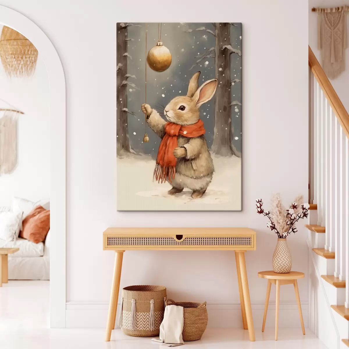 Gemälde Winterhase mit Schal und Weihnachtsbaumkugel Art. s46619