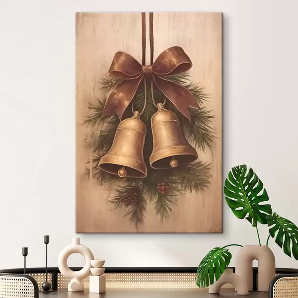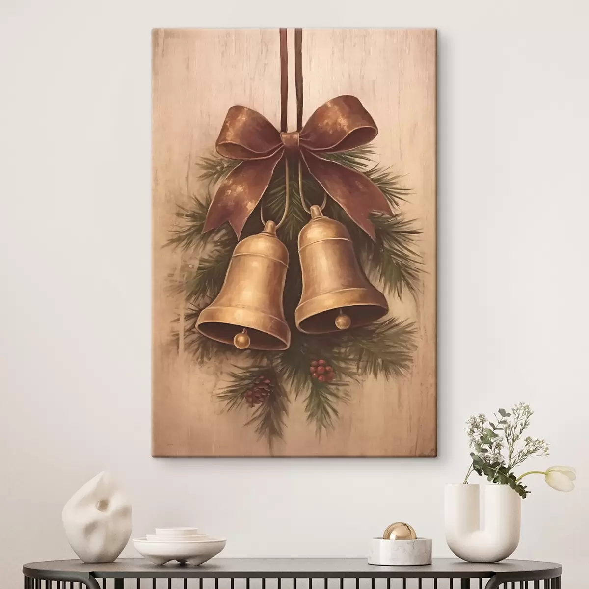 Gemälde Vintage-Weihnachtsdekoration mit zwei Glocken und einer Schleife Art. s46626