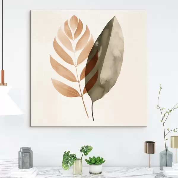 Gemälde Ein Duo aus Blattsilhouetten im abstrakten Aquarellstil Art. s46645