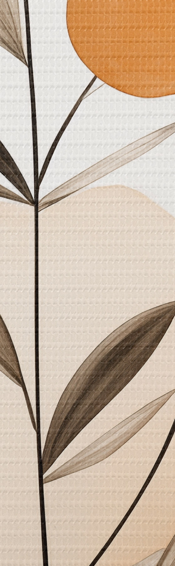 Fototapete Abstrakte Malerei-Imitation mit orangefarbenen und grauen Kreisen, Blättern und Zweigen, moderner Stil, Aquarelleffekt s46698