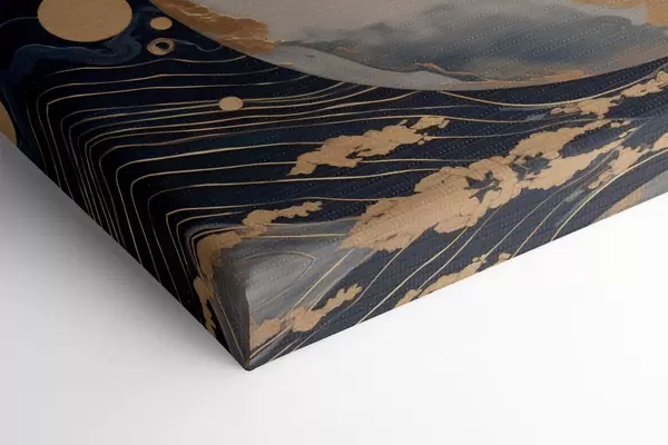 Gemälde Strukturierter dekorativer Planet mit gelben Linien im Hintergrund, gelben Punkten im Hintergrund, dunklem Hintergrund Art. s46708