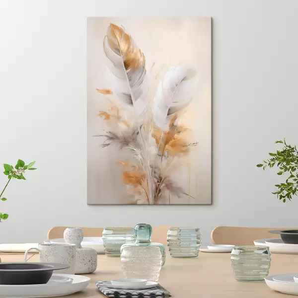 Gemälde Abstrakte Federn, umgeben von beigen und braunen Federn, weich und zart, auf hellbeigem Hintergrund Art. s46711