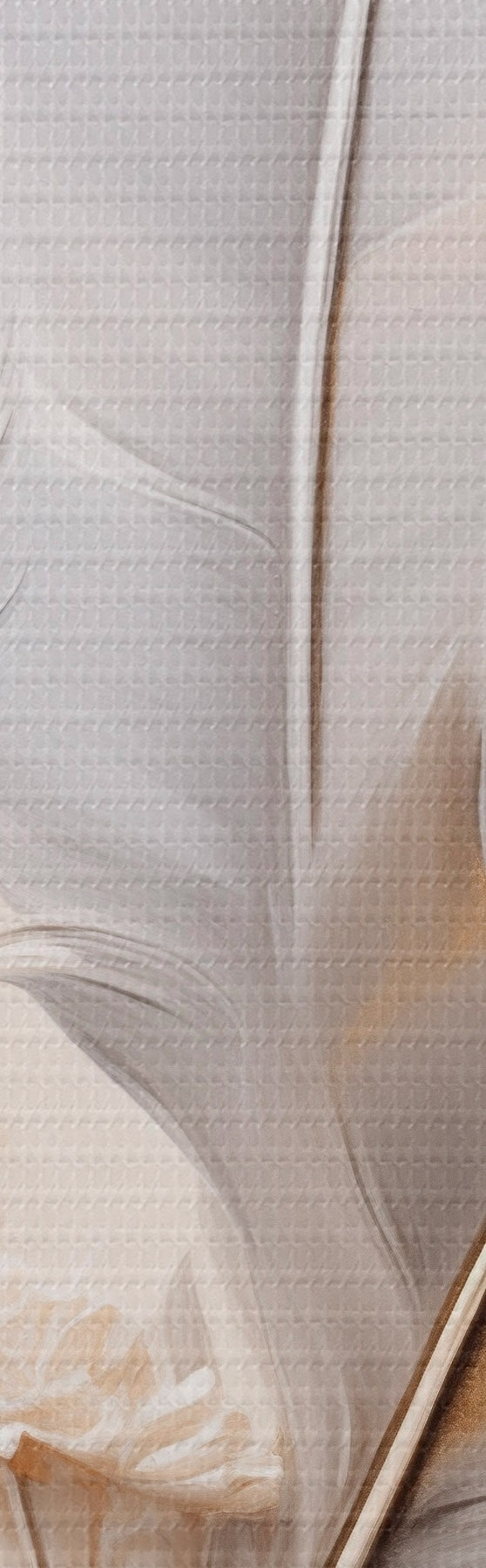 Gemälde Abstrakte Federn, umgeben von beigen und braunen Federn, weich und zart, auf hellbeigem Hintergrund Art. s46712
