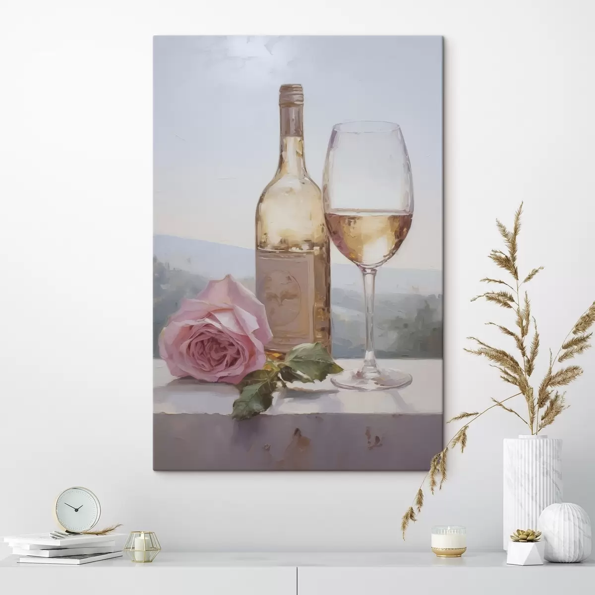 Gemälde Eine Flasche und ein Glas Wein und ein kleiner Hund mit Brille, Gemäldeimitation Art. s46721