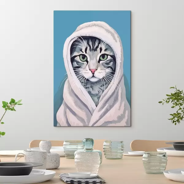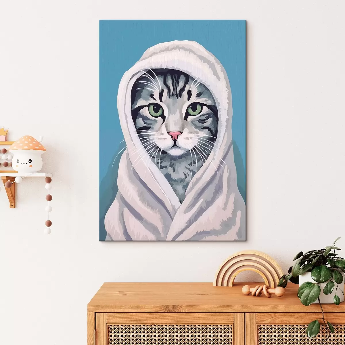 Gemälde Gestreifte Katze in einem weißen Handtuch Art. s46740