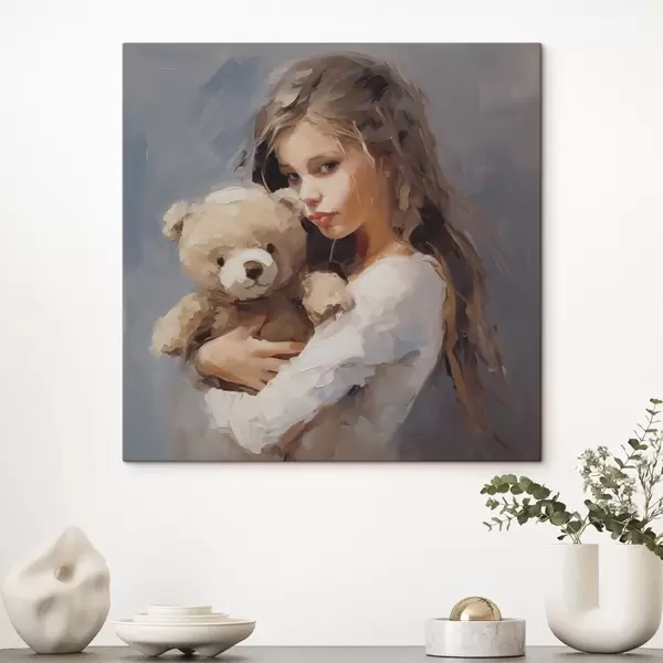 Gemälde Mädchen mit einem Spielzeugbären, Gemäldeimitation Art. s46746