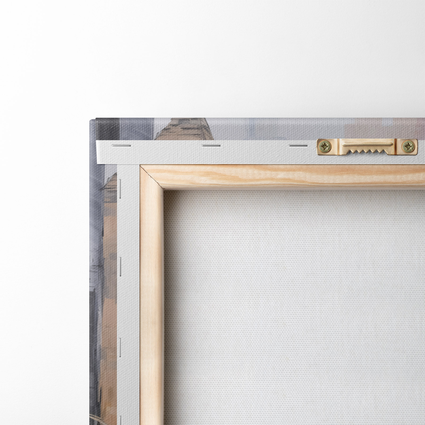 Um die Leinwand auf Keilrahmen zu spannen, ohne das Bild zu beschädigen, verwenden wir ein gespiegeltes Bild.