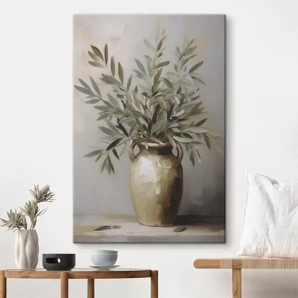 Fototapete Olivenzweige in einer Vase – Imitationsgemälde s46758