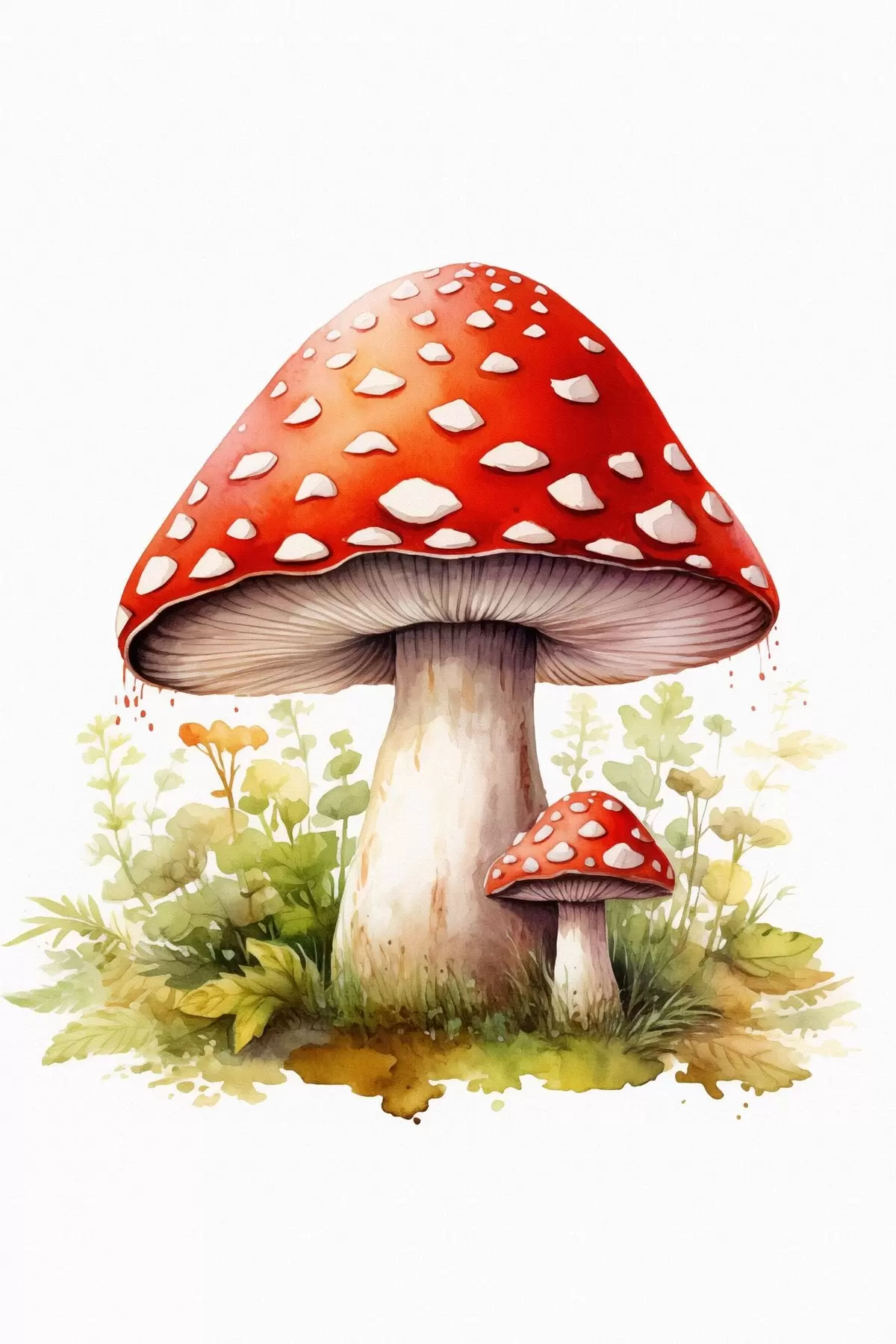 Gemälde Waldpilze, Fliegenpilz, Aquarellimitation Art. s46767