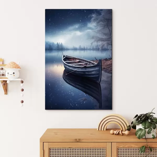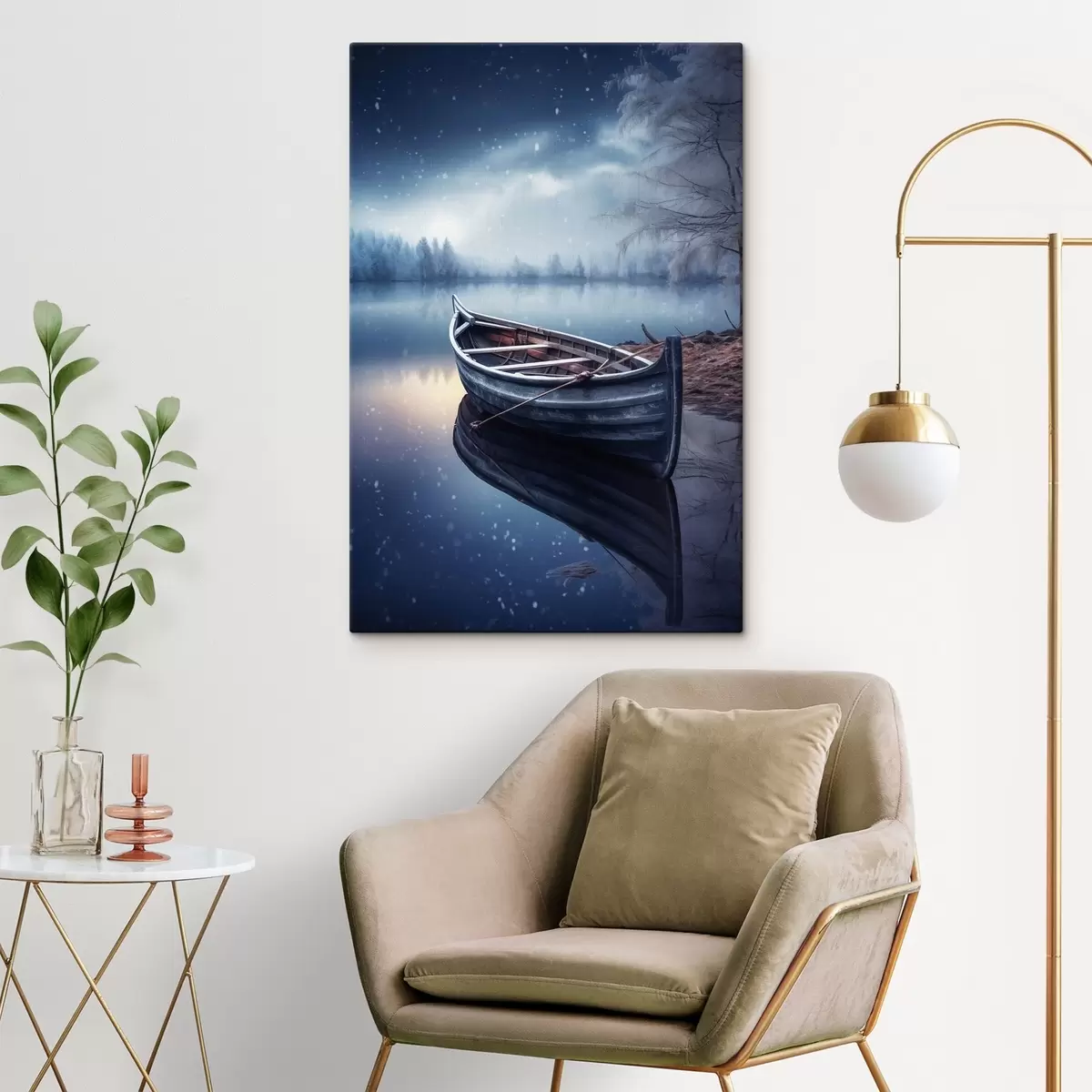 Gemälde Leeres Boot an einem winterlichen See Art. s46773