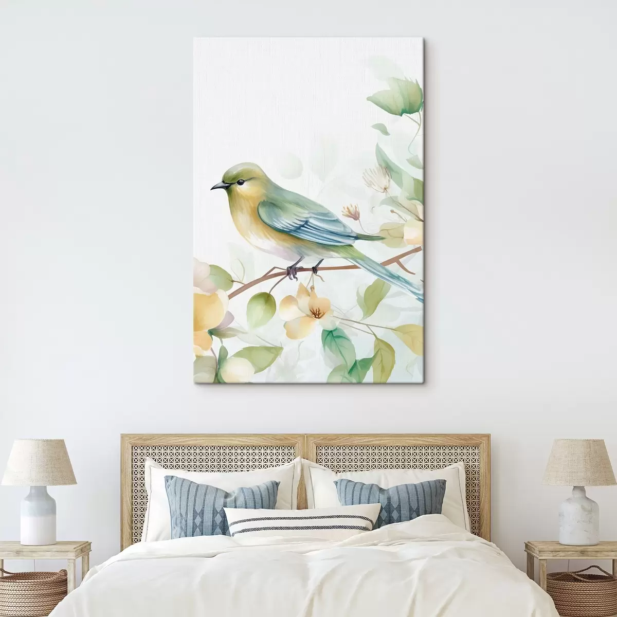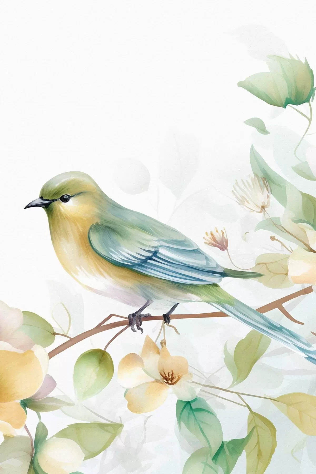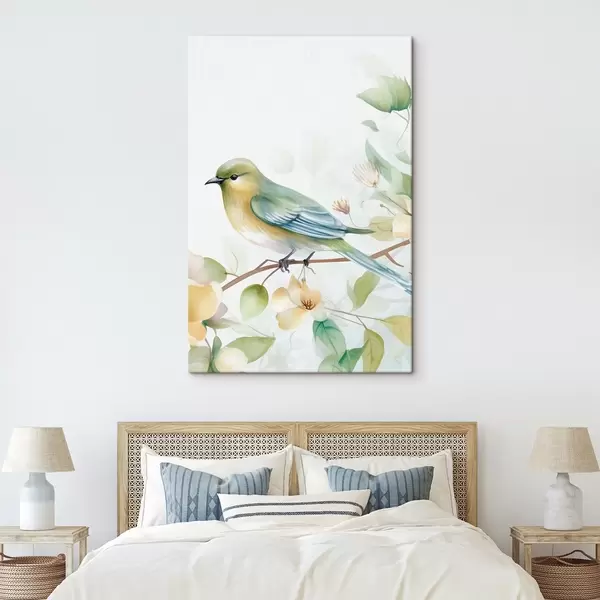 Fototapete Meise auf einem Ast, Aquarellimitation s46892