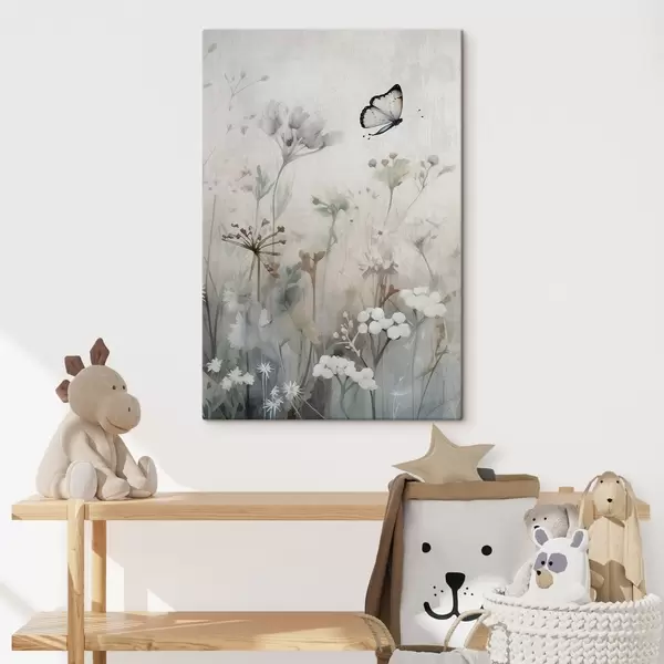 Gemälde Schmetterling vor einem Hintergrund aus Wildblumen Art. s46897