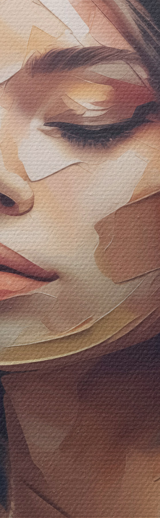 Drei Materialtypen stehen zur Verfügung: Economic Canvas - ein dichtes und haltbares Material für den Digitaldruck, identisch mit Malerleinwand, wasserfeste Oberfläche, realistische Wiedergabe von Details, mittelkörniges Material. Premium Canvas - die Textur ähnelt der einer Malerleinwand (verwobene kleine Fäden). Weiche, detaillierte Wiedergabe des Bildes auf einer matten Oberfläche. Eco-Premium - hochwertiges Gewebe aus 100% Baumwolle. Dank der natürlichen Baumwollfasern ist das Material langlebig und verschleißfest. Hervorragende Farbwiedergabe und Detailtreue.