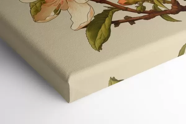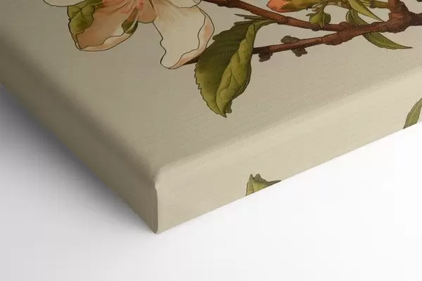 Fototapete Blühender Zweig mit weißen Blüten auf beigem Hintergrund im Stil einer klassischen Illustration s46923