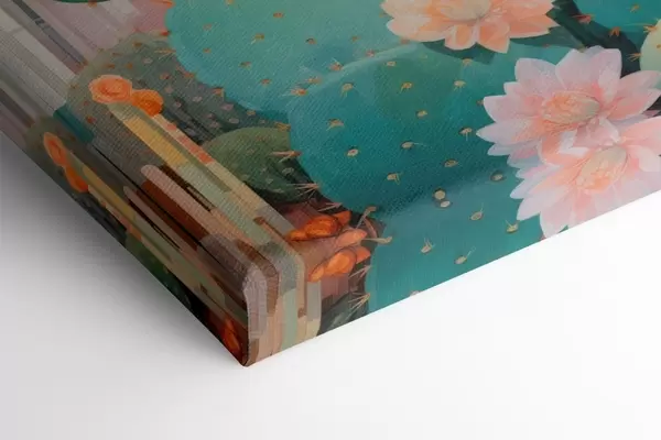 Gemälde Kaktusblütengarten in sanften Pastelltönen im Illustrationsstil Art. s46935