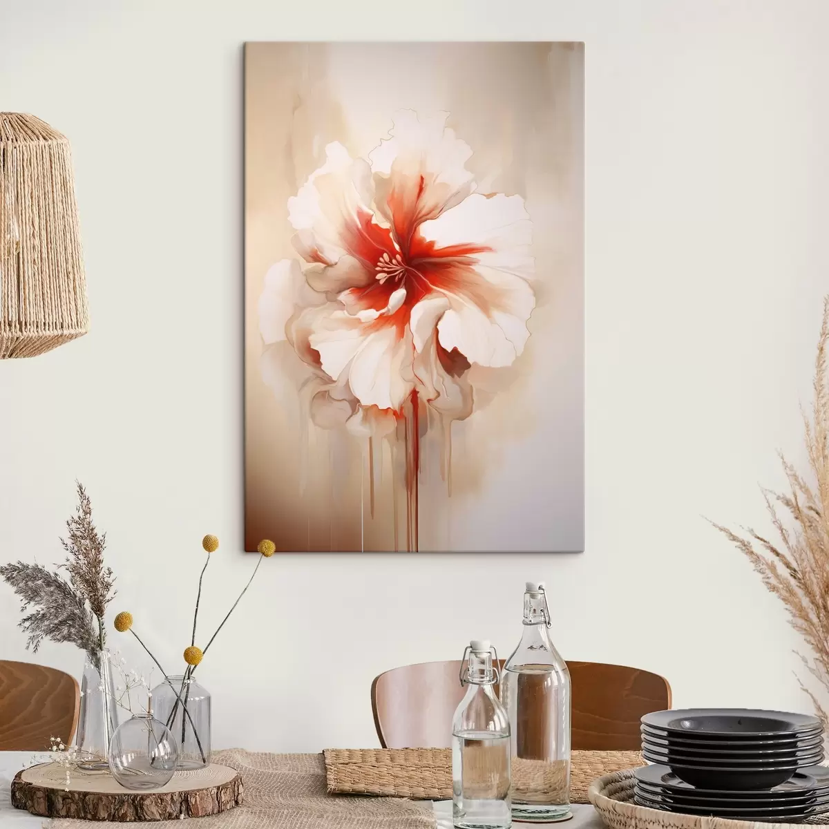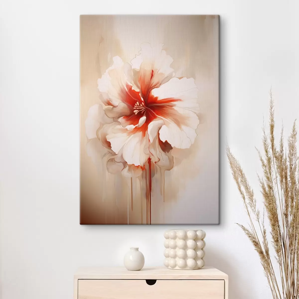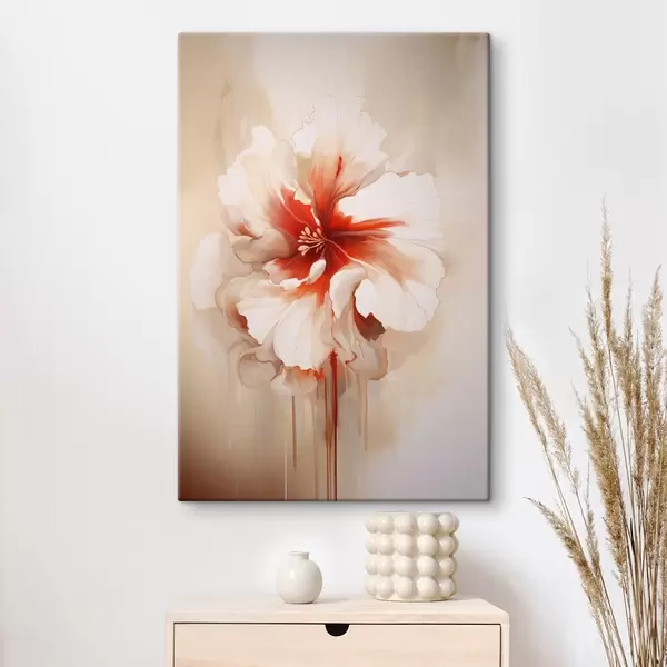 Gemälde Weiße und rote Blume mit halbtransparenten Blütenblättern und fließenden Farbtropfen Art. s46940