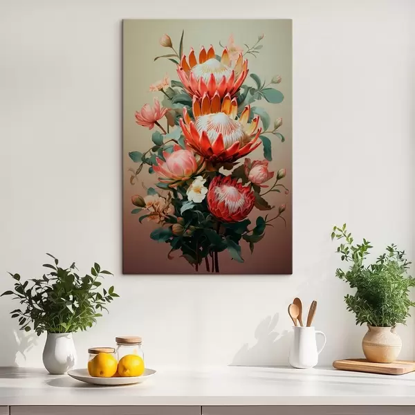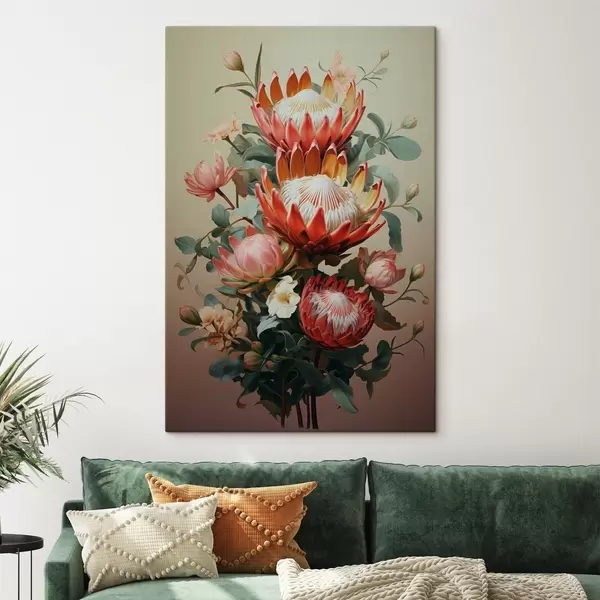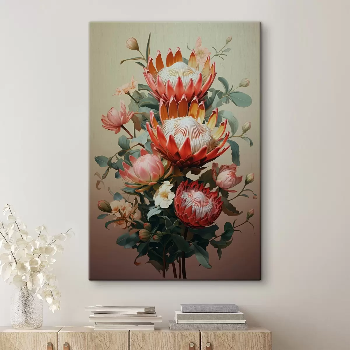 Gemälde Komposition mit großen Proteas in einem modernen digitalen, malerischen Illustrationsstil Art. s46947