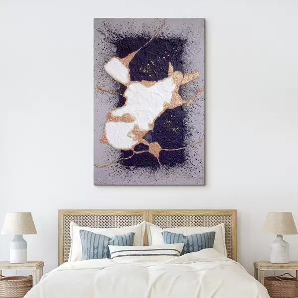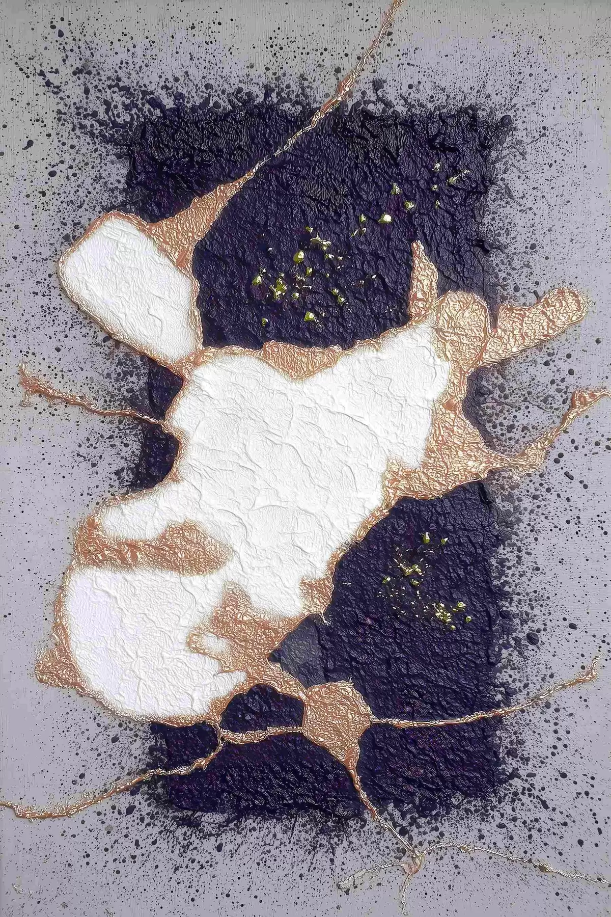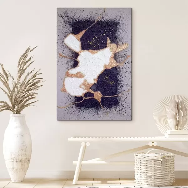 Gemälde Abstraktes Design in Lila- und Beigetönen mit volumetrischem Struktureffekt Art. s46952