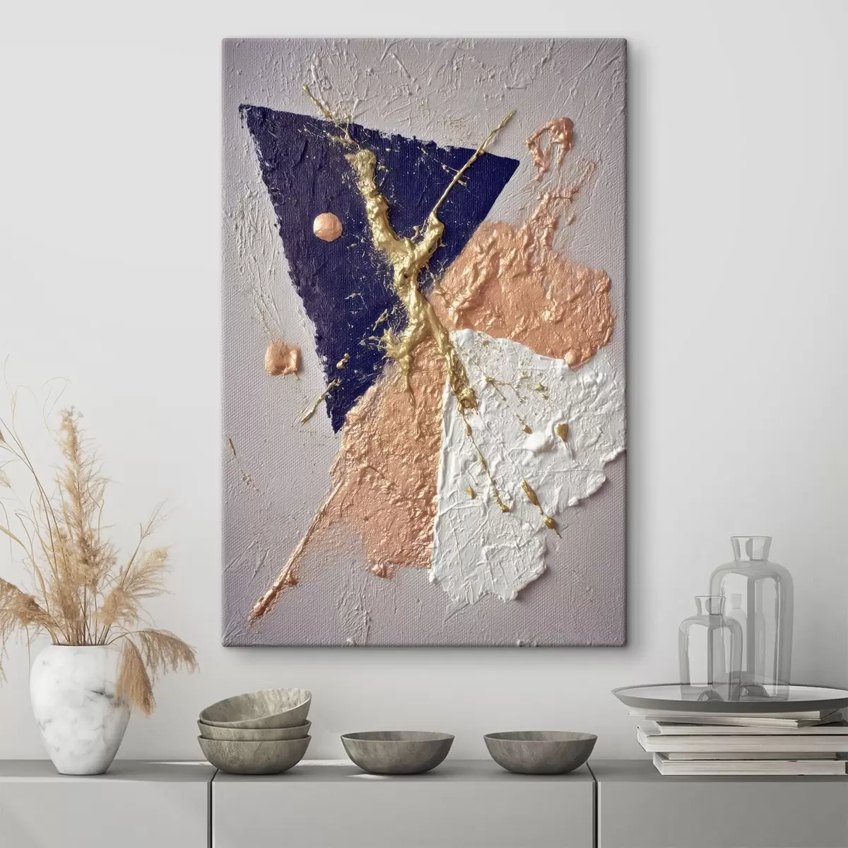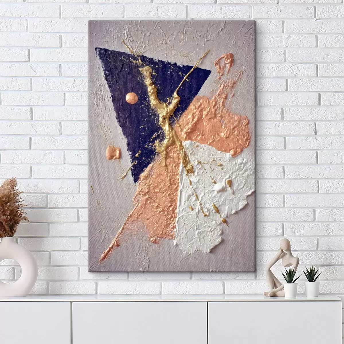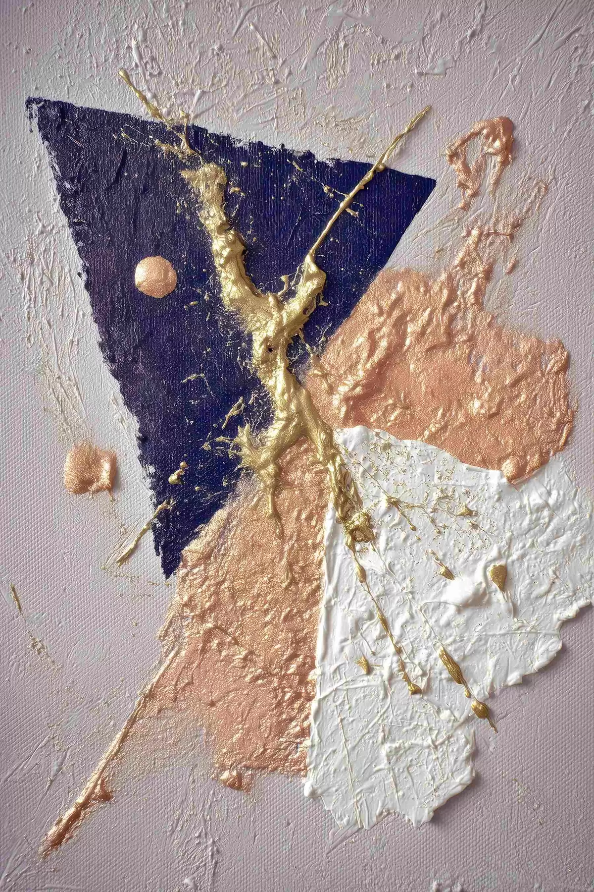 Gemälde Abstrakte Komposition mit einem dunkelblauen Dreieck und reliefartigen Pinselstrichen im Stil der Ölmalerei Art. s46953
