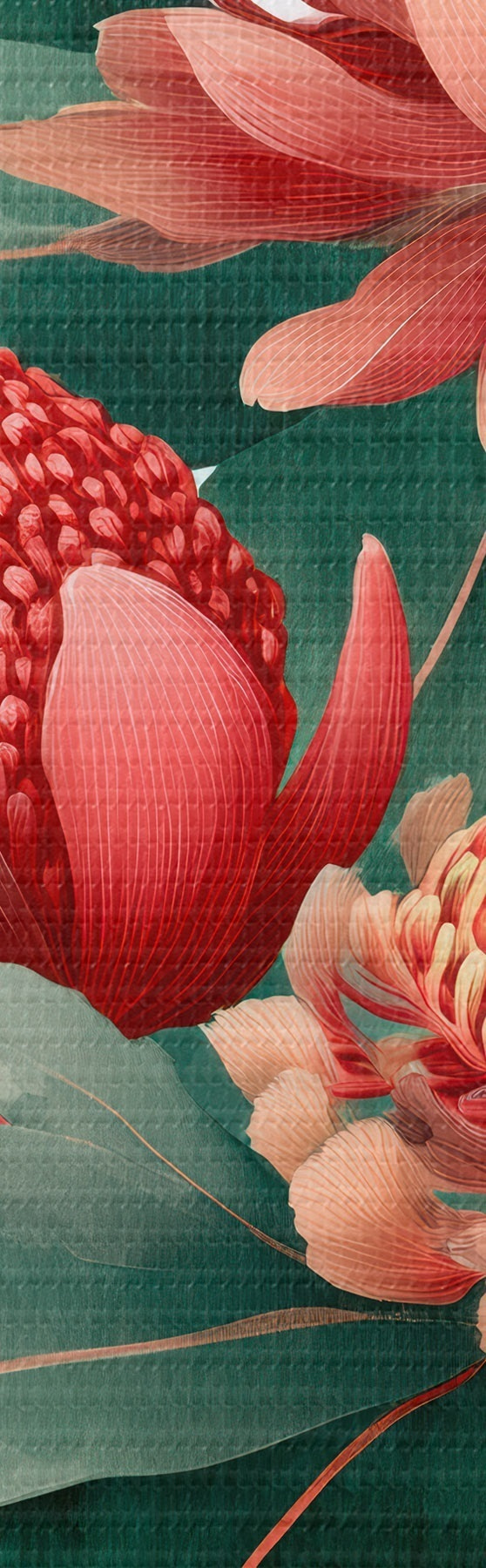 Fototapete Blumenkomposition mit großen Proteas und Eukalyptus im modernen Stil digitaler Malerei s46955