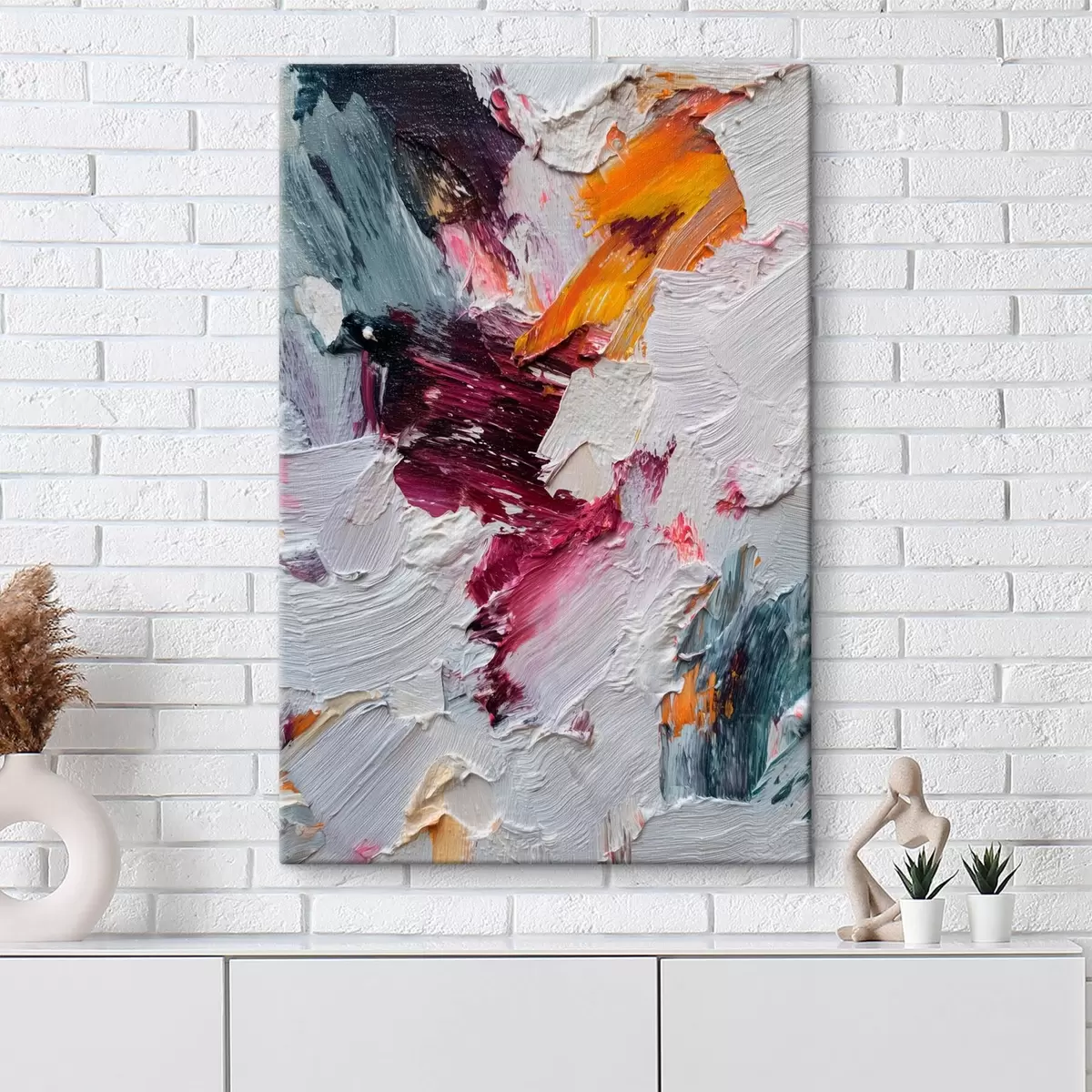 Gemälde Abstrakte Komposition mit intensiven Pinselstrichen in Kirsch- und Orangetönen im Stil der Ölmalerei Art. s46959