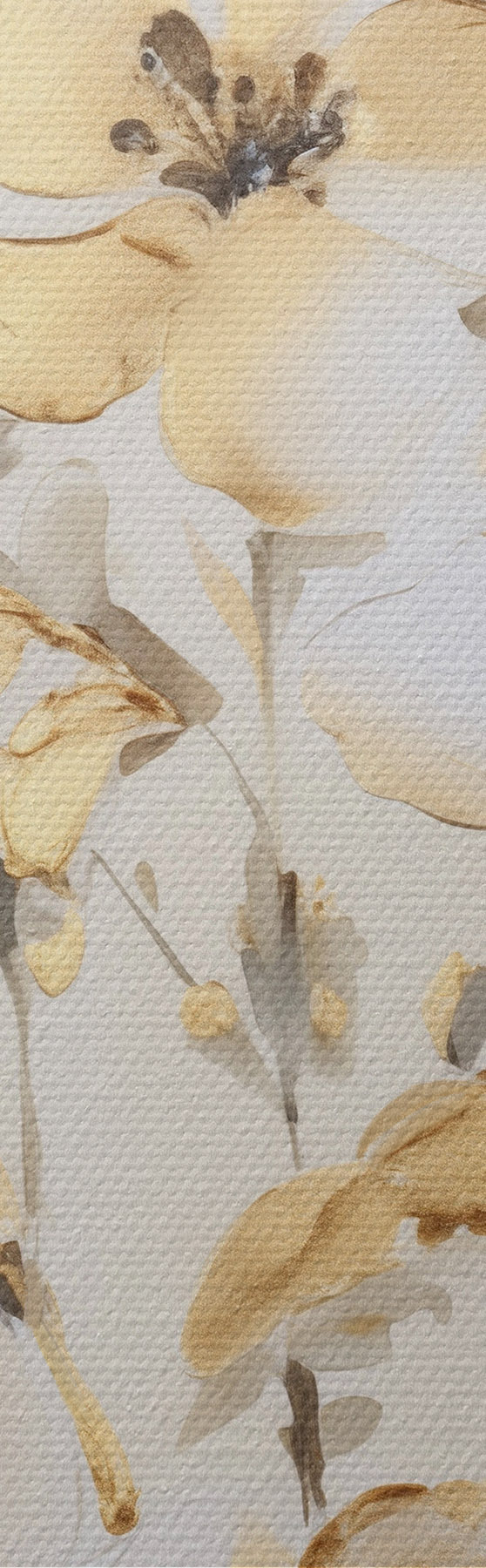 Fototapete Strukturierte gelbe Blüten und Blätter vor weißem Hintergrund, mit zarten Pinselstrichen s47017