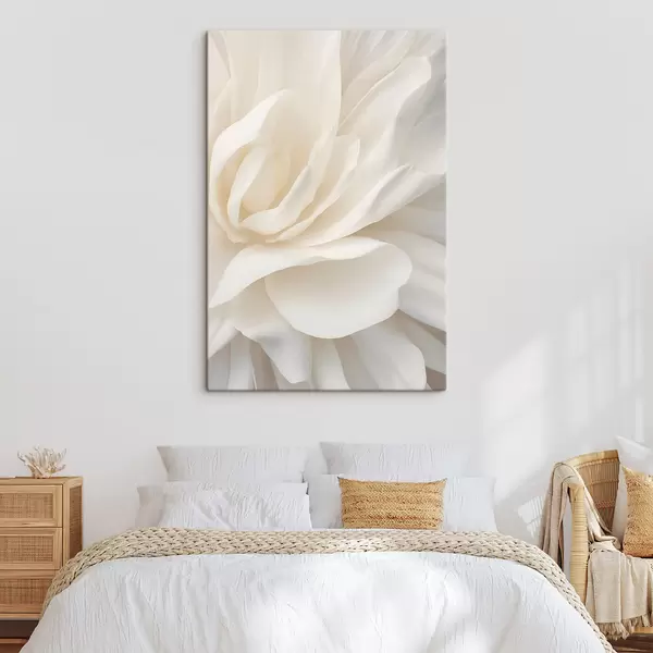 Fototapete Abstrakte weiße Blume mit zarten, geschichteten Blütenblättern, minimalistische Kunst s47024