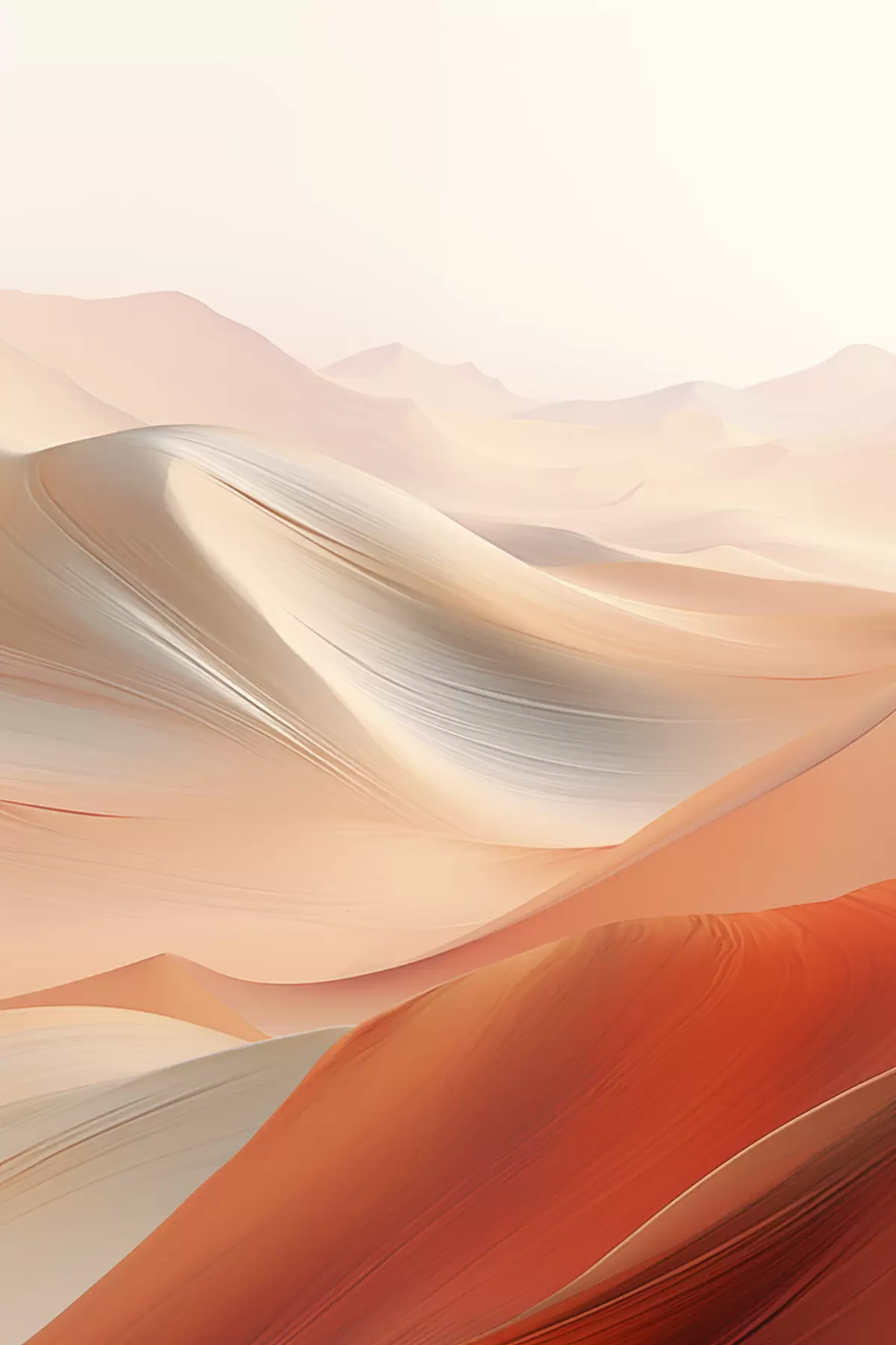 Fototapete Abstrakte Wüstenlandschaft mit fließenden Sanddünen in warmen Orange- und Weißtönen s47030