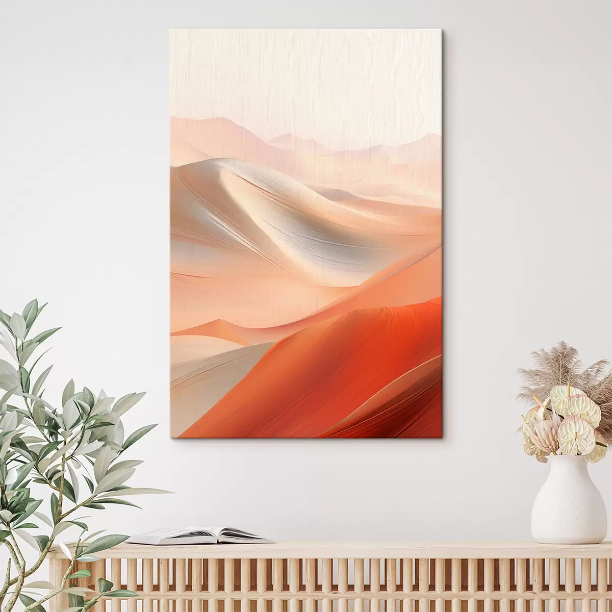 Gemälde Abstrakte Wüstenlandschaft mit fließenden Sanddünen in warmen Orange- und Weißtönen Art. s47030