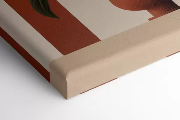 Gemälde Abstrakte Topfpflanze mit großen grünen und beigen Blättern vor einem cremefarbenen Torbogen mit Terrakotta-Akzenten Art. s47032