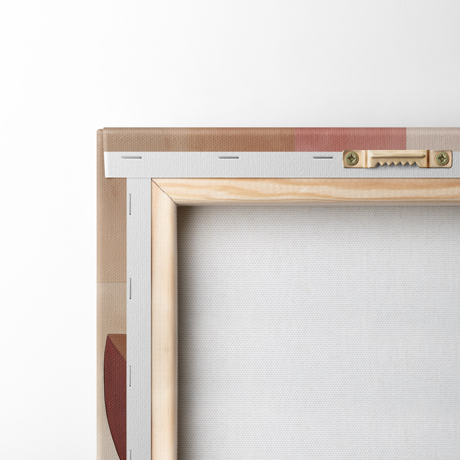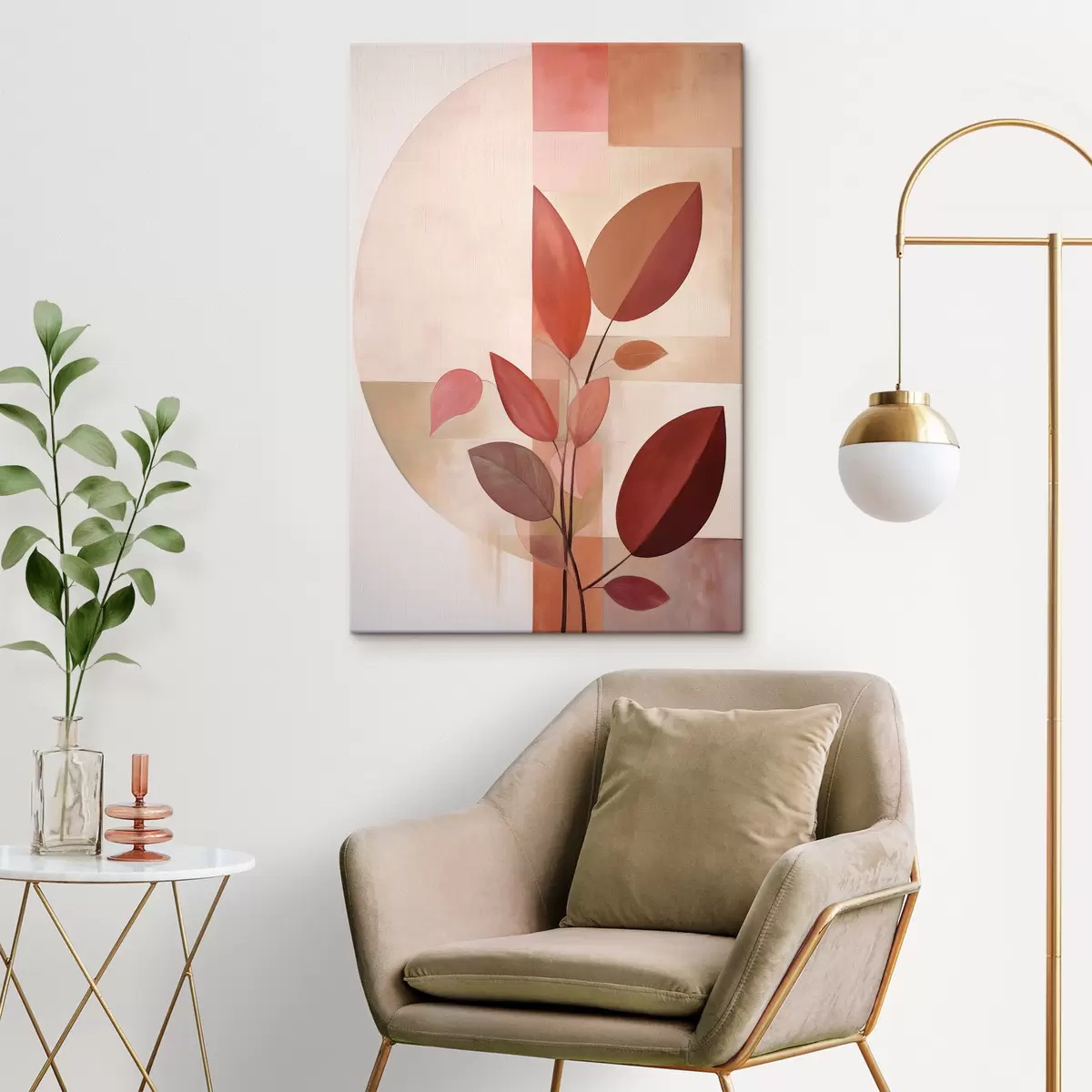 Gemälde Abstrakte Pflanze mit roten Blättern vor einem Hintergrund aus geometrischen Formen und sanften, gedämpften Farben Art. s47041