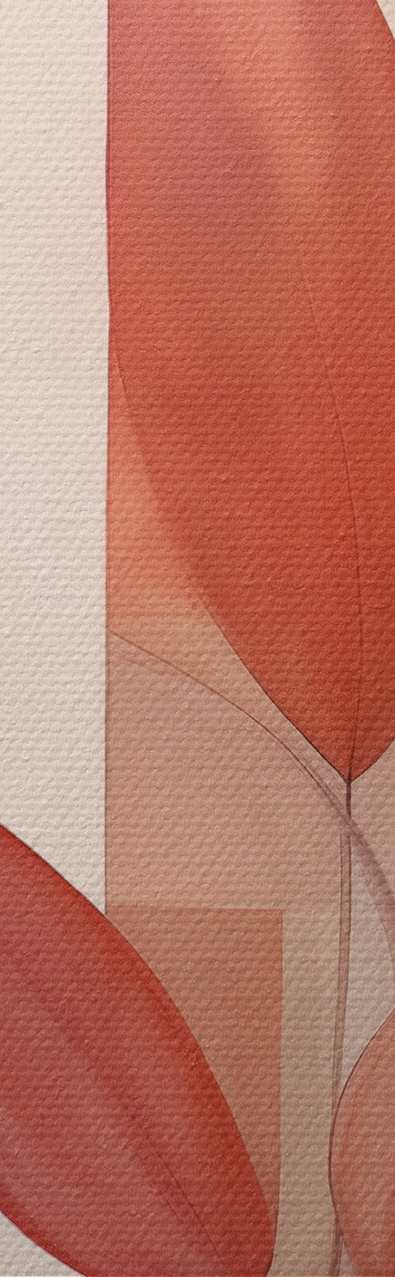 Fototapete Abstrakte Pflanze mit roten Blättern vor einem Hintergrund aus geometrischen Formen und sanften, gedämpften Farben s47041