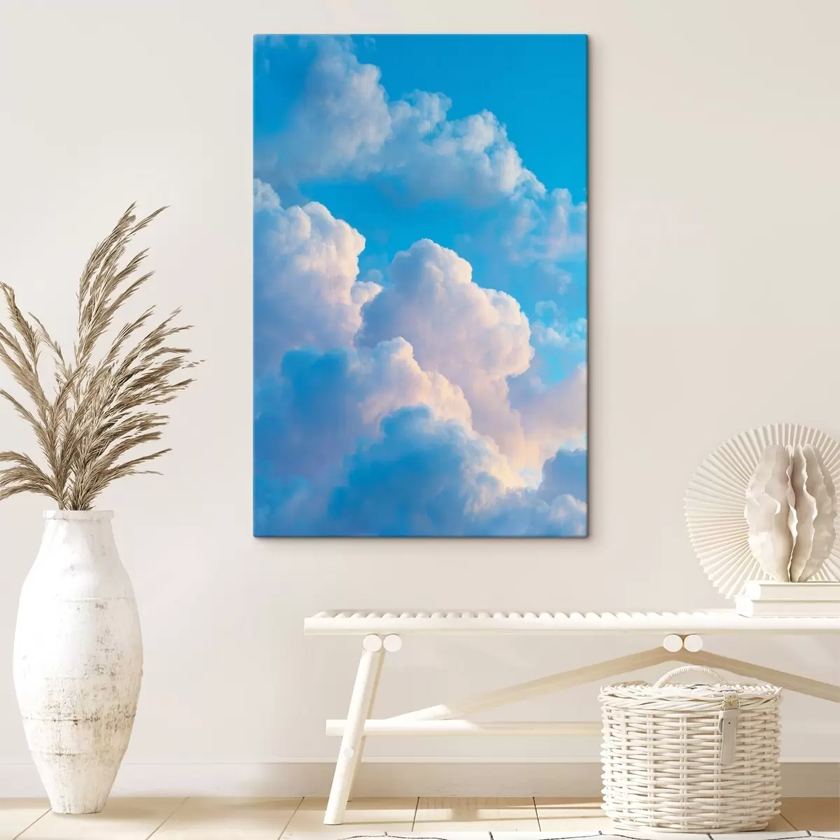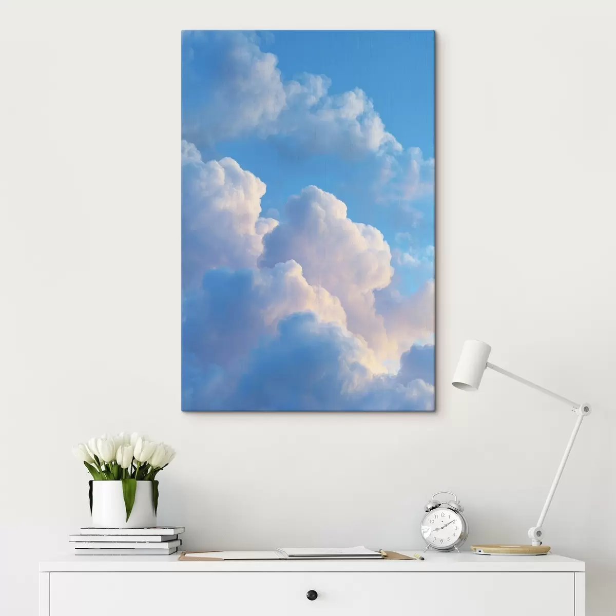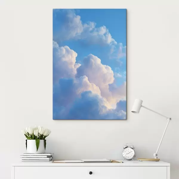 Gemälde Voluminöse Wolken in sanften Blau- und Rosatönen im fotorealistischen digitalen Grafikstil Art. s47088