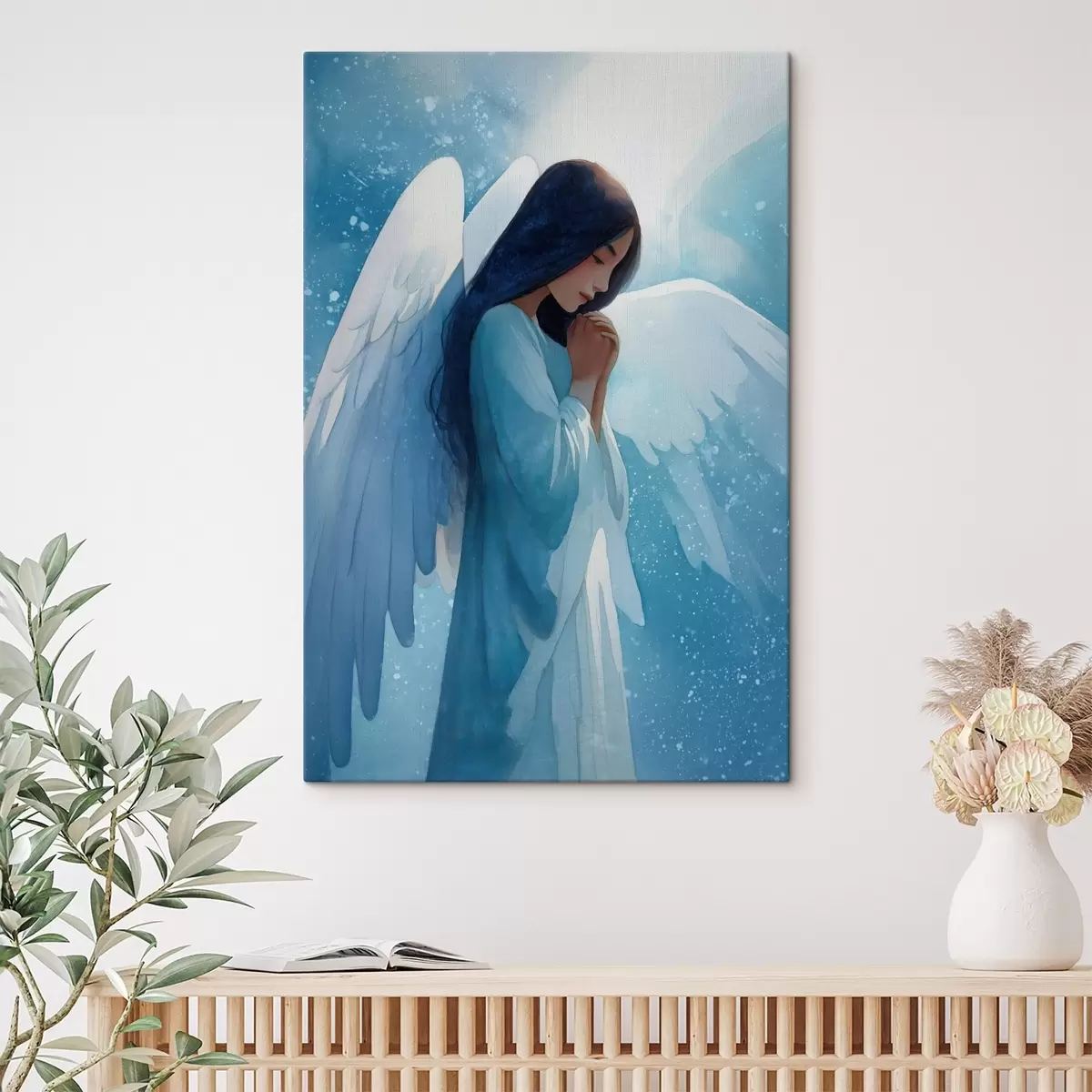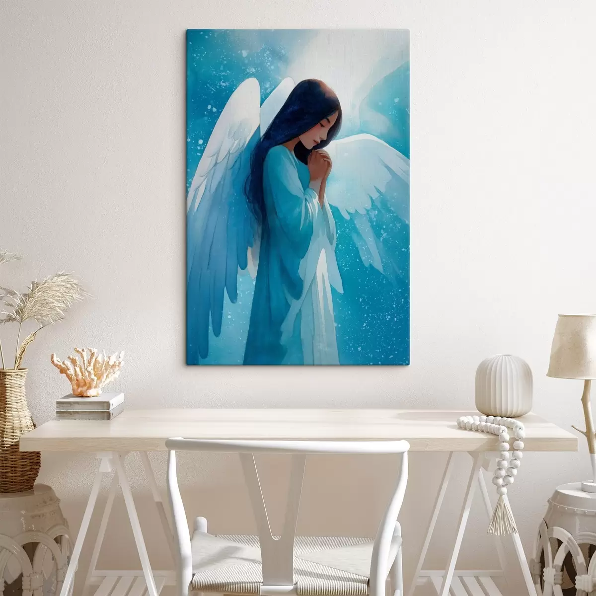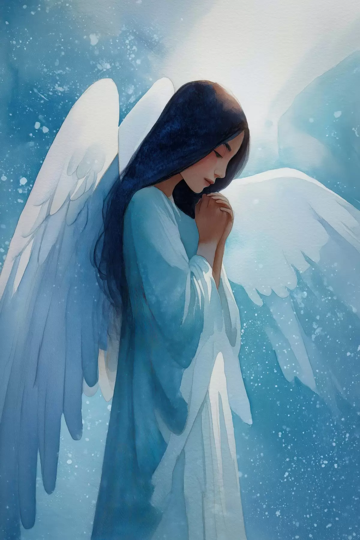 Gemälde Aquarell-Harmonie: Engel im Licht auf blauem Hintergrund Art. s47094