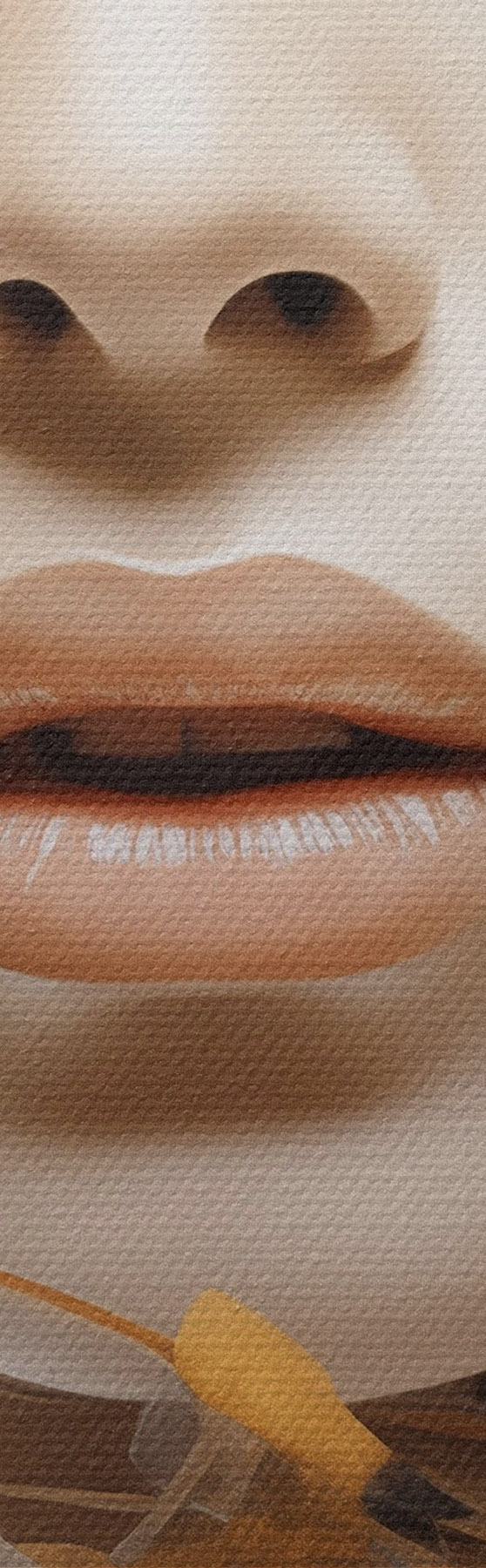 Das Bild kann vorsichtig mit einem trockenen, weichen Tuch oder Schwamm abgewischt werden; es wird nicht empfohlen, feuchte Produkte zu verwenden. Die Verwendung eines feuchten Schwamms ist nur zulässig, wenn das Bild lackiert wurde.