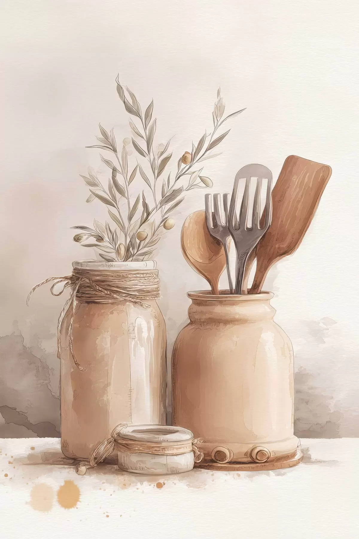 Gemälde Küchenstillleben im Aquarellstil Art. s47125