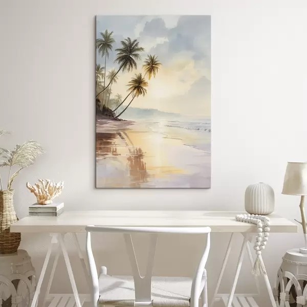 Gemälde Sonnenuntergang am Strand einer Insel im Aquarellstil Art. s47136